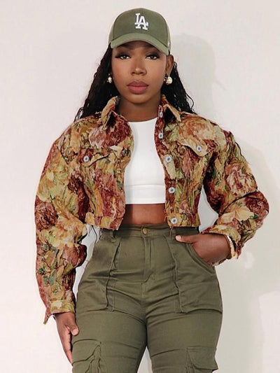 SIDA™ - Chic Floral Print Crop Long Sleeve Jacket